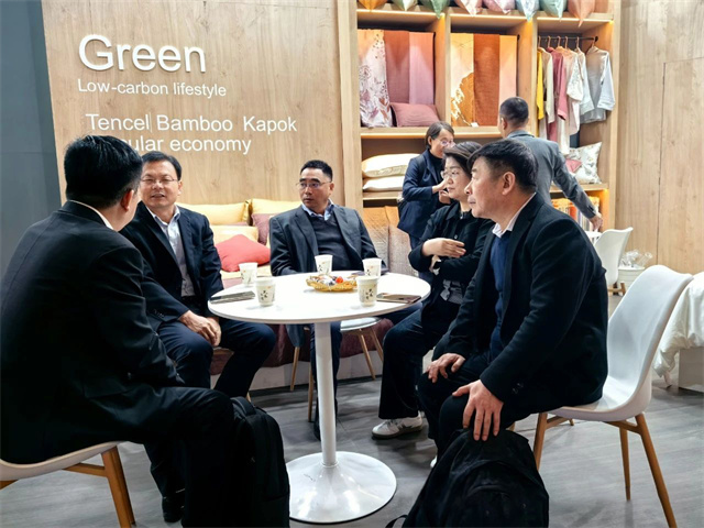 展會(huì)首日,中國(guó)紡織工業(yè)聯(lián)合會(huì)副會(huì)長(zhǎng)楊兆華等領(lǐng)導(dǎo)專程到華紡股份展位參觀指導(dǎo)。領(lǐng)導(dǎo)們認(rèn)真聽(tīng)取了家紡公司總經(jīng)理成汝海對(duì)家紡產(chǎn)品的介紹,仔細(xì)觀看了解了各類展品。楊兆華副會(huì)長(zhǎng)對(duì)華紡股份有限公司在產(chǎn)業(yè)升級(jí)、產(chǎn)品結(jié)構(gòu)調(diào)整方面取得的成績(jī)給予了充分肯定,希望公司繼續(xù)加大研發(fā)投入,提升產(chǎn)品科技含量和附加值,進(jìn)一步加強(qiáng)品牌建設(shè),提高中國(guó)家紡產(chǎn)品在國(guó)際市場(chǎng)的知名度和影響力。